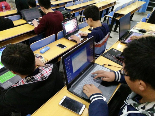 计算机协会介绍比赛规则,紧接着比赛开始。在激烈的比赛过程中,每位参赛同学的脸上都表现出专注和认真。他们飞快的敲着键盘,为了赢得胜利都各自努力着。